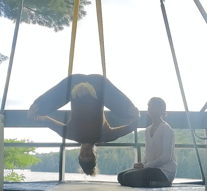 Achieve your mobility goals with the support of an aerial yoga hammock! Book a 1:1 session with one of Canada’s leading aerial yoga instructors, Kaye Peñaflor, in three easy steps.